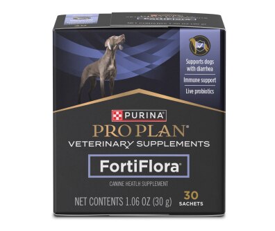 Provide specialized support for your dog by adding Purina Pro Plan Veterinary Supplements FortiFlora Probiotic for Dogs to their diet. FortiFlora dog probiotics supplement contains a strain proven to promote intestinal health and balance. Formulated for the management of dogs with diarrhea, these safe and effective digestive probiotics for dogs are simple to administer. Each packet of these dog supplements contains a guaranteed level of live microorganisms to help promote normal intestinal microflora. A proprietary microencapsulation process helps enhance the stability and survival of the probiotics until they reach your dog’s intestinal tract. These probiotic dog supplements also offer immune support and helps reduce gas in dogs. FortiFlora digestive probiotics for dogs are appropriate for administration to both puppies and adult dogs.